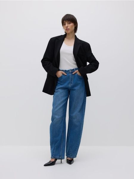 Jeansy o kroju balloon, wykonane z bawełnianej tkaniny.