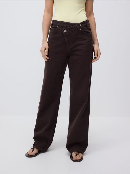 Jeansy wide leg z asymetrycznym zapięciem – brązowy