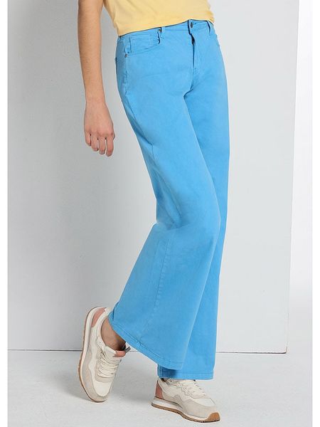 – wysokość pasa: high waist- fason: flared fit- krój nogawek: szeroki- zapięcie: guzik i suwak- szlufki na pasek: tak- kieszenie: 5 klasycznych- look: jednokolorowy