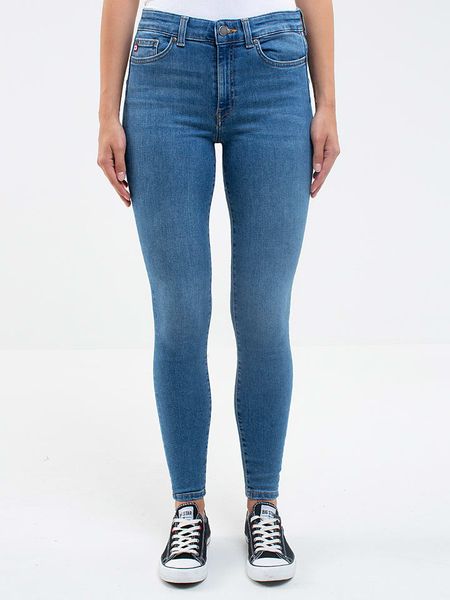 – wysokość pasa: high waist- fason: skinny fit- krój nogawek: wąski- szlufki na pasek: tak- zapięcie: guzik i suwak- kieszenie: 5 klasycznych- naszywki: skórzane- przetarcia: tak