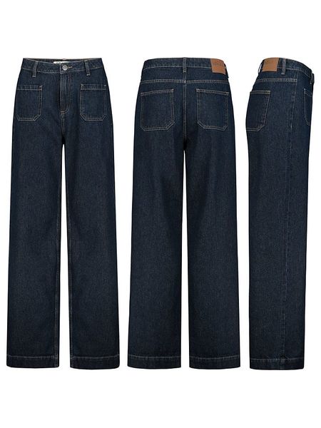 – czysta bawełna- wysokość pasa: high waist- fason: comfort fit- krój nogawek: szeroki- szlufki na pasek: tak- zapięcie: guzik i suwak- kieszenie: naszyte, tylne- naszywki: ze skóry syntetycznej- look: jednokolorowy