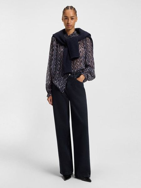 – wysokość pasa: high waist- fason: comfort fit- krój nogawek: szeroki- szlufki na pasek: tak- zapięcie: guzik i suwak- kieszenie: 5 klasycznych- naszywki: ze skóry syntetycznej- przetarcia: tak