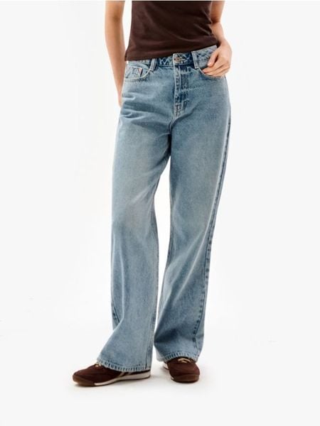 Sinsay – Jeansy wide leg z efektem sprania – niebieski –