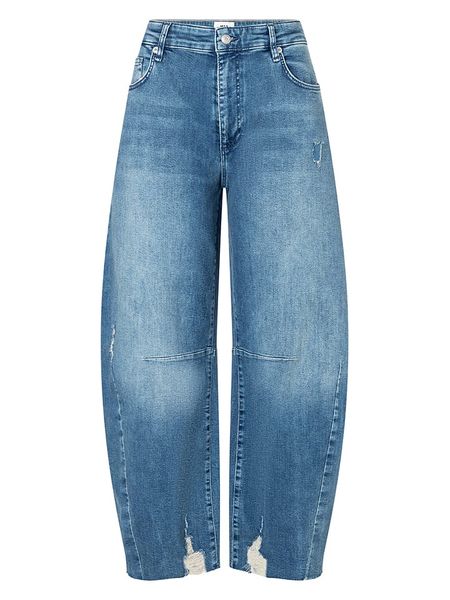 – wysokość pasa: high waist- fason: comfort fit- krój nogawek: szeroki- szlufki na pasek: tak- zapięcie: guzik i suwak- kieszenie: 5 klasycznych- naszywki: skórzane- zakończenie nogawek: cropped- przetarcia: tak