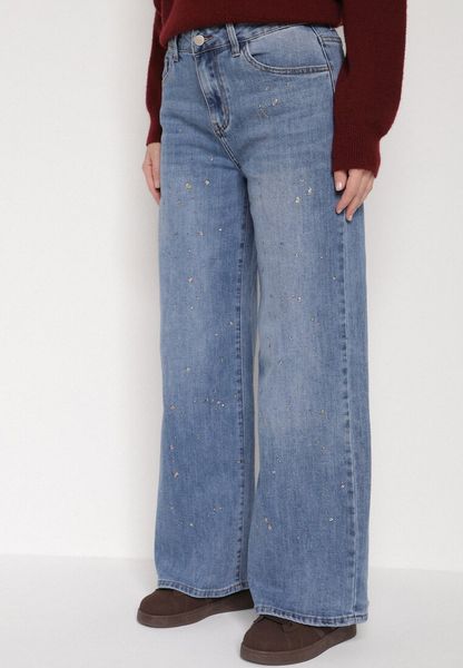 Niebieskie Szerokie Jeansy z Wysokim Stanem i Błyszczącymi Aplikacjami Glysera