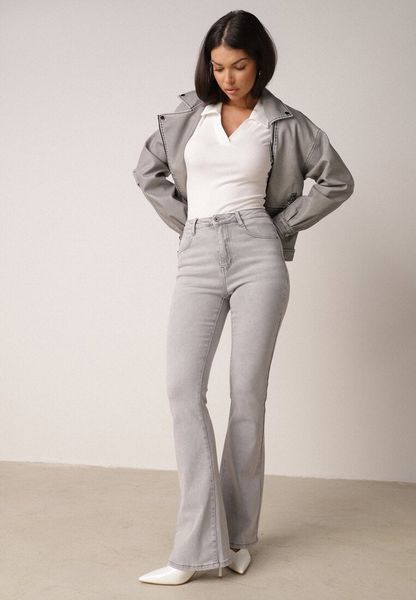 Szare Bawełniane Jeansy Dzwony z Wysokim Stanem Bwynvienne