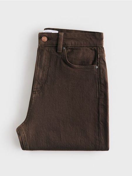 Jeansy o kroju mom fit, wykonane z bawełnianej tkaniny.