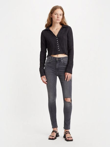 – wysokość pasa: high waist- fason: skinny fit- krój nogawek: wąski- szlufki na pasek: tak- zapięcie: guzik i suwak- kieszenie: 5 klasycznych- naszywki: skórzane- przetarcia: tak- look: destroyed