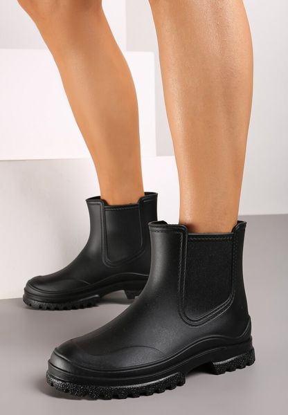 Czarne Krótkie Kalosze na Płaskiej Podeszwie Tirvia