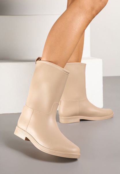 Beżowe Eleganckie Kalosze z Ozdobnym Przeszyciem Lenrisa