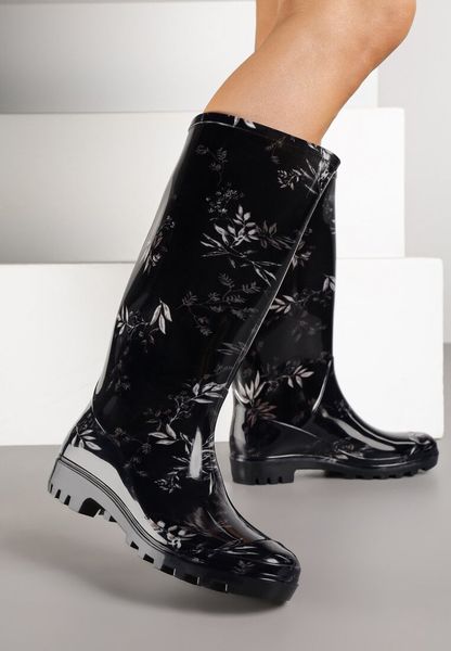 Czarne Kalosze Ozdobione Motywem Liści Rilireia