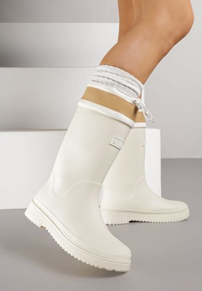 Białe Kalosze Ozdobione Napisem ze Ściągaczem przy Cholewce Voslia