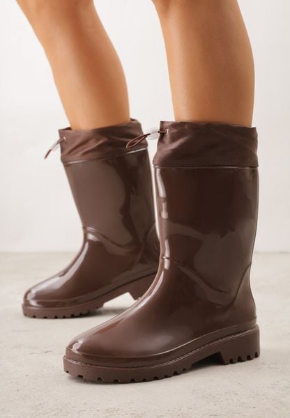 Brązowe Lakierowane Kalosze ze Ściąganą Cholewką Fevaselle