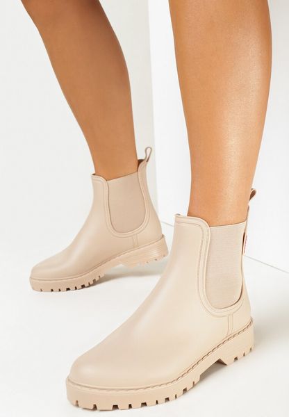 Beżowe Kalosze Sztyblety z Elastycznymi Wstawkami Asmo