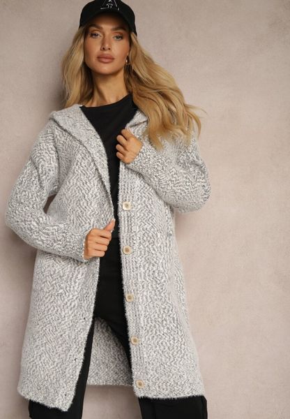 Szary Rozpinany Kardigan z Dodatkiem Wiskozy i Kapturem Ozdobiony Kieszeniami Olianne