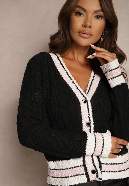 Czarny Kardigan z Wiskozą na Guziki z Paskami Liathalie