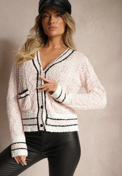 Różowy Kardigan z Wiskozą na Guziki z Paskami Liathalie