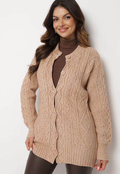 Ciemnobeżowy Rozpinany Kardigan Ozdobiony Tłoczeniem Melorisse