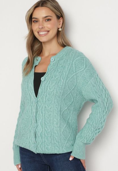 Miętowy Rozpinany Kardigan Ozdobiony Tłoczeniem Melorisse