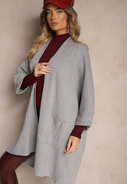 Szary Kardigan Bez Zapięć Ozdobiony Guzikami i Wsuwanymi Kieszeniami Asindra