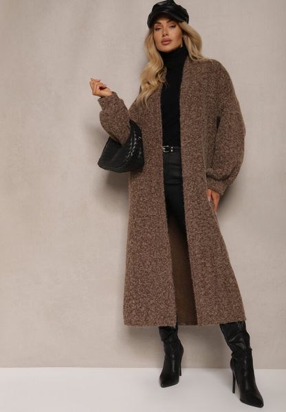 Brązowy Kardigan Niezapinany o Długim Kroju Ozdobiony Szerokimi Rękawami Tifilina