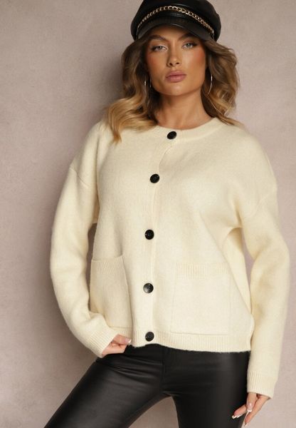 Jasnobeżowy Rozpinany Casualowy Kardigan z Wełną Besalttia