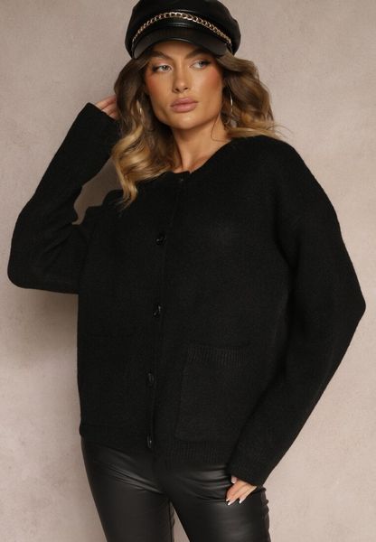 Czarny Rozpinany Casualowy Kardigan z Wełną Besalttia