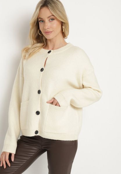 Jasnobeżowy Klasyczny Kardigan z Wełną na Guziki Xesaltia