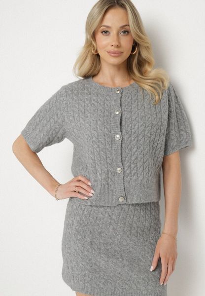 Szary Rozpinany Kardigan z Wełną Ozdobiony Guzikami i Tłoczeniem Ralzeki