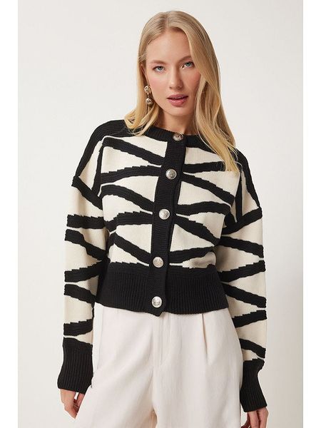 Happiness Istanbul Kardigan w kolorze kremowo-czarnym rozmiar: onesize