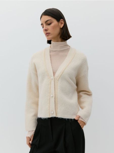 Miękki kardigan z ozdobnymi guzikami – kremowy
