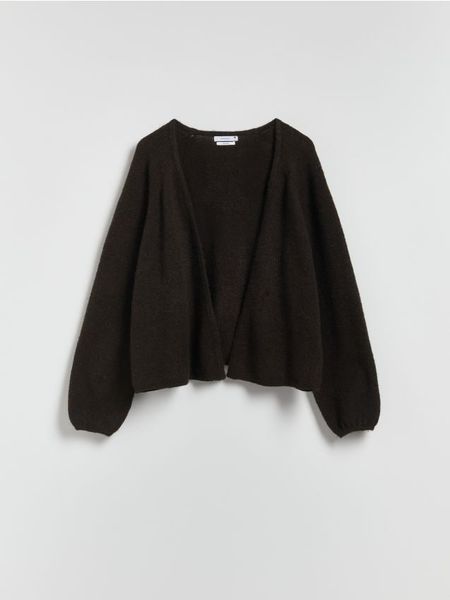 Kardigan z dodatkiem wełny – ciemnobrązowy