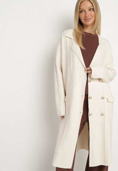 Jasnobeżowy Długi Kardigan z Wiskozą na Guziki Arevira