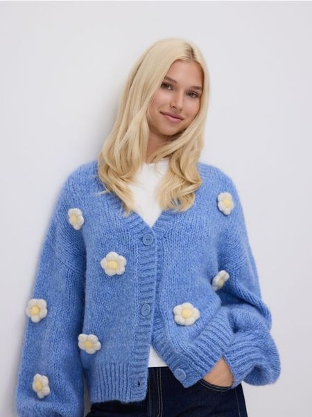 Kardigan z kwiatową aplikacją – jasnoniebieski