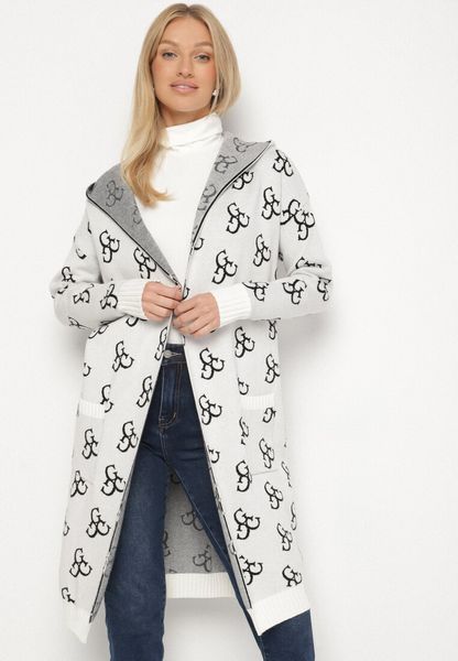 Jasnoszary Kardigan z Geometrycznym Motywem Ralanis