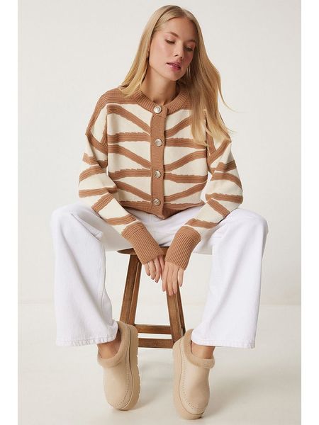 Happiness Istanbul Kardigan w kolorze kremowo-jasnobrązowym rozmiar: onesize