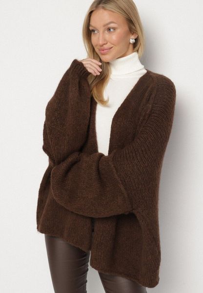 Brązowy Nietoperzowy Kardigan Bez Zapięć z Domieszką Wełny i Wiskozy Rallisa