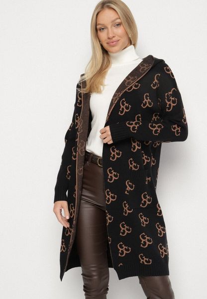 Czarny Kardigan z Geometrycznym Motywem Ralanis
