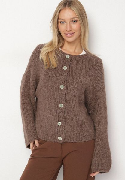 Jasnobrązowy Kardigan z Dodatkiem Wełny i Wiskozy o Nietoperzowym Kroju Tiaravia