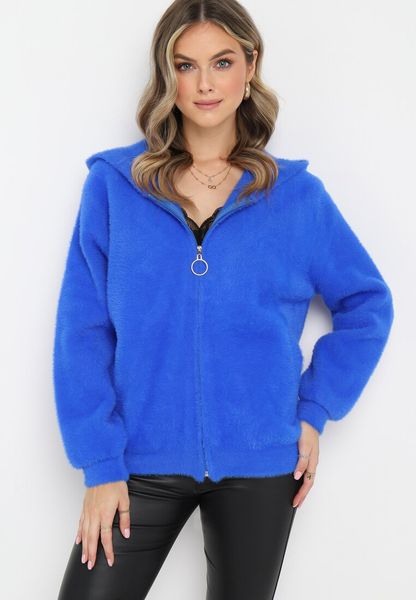 Niebieski Wełniany Kardigan z Kapturem i Suwakiem Sakiyah