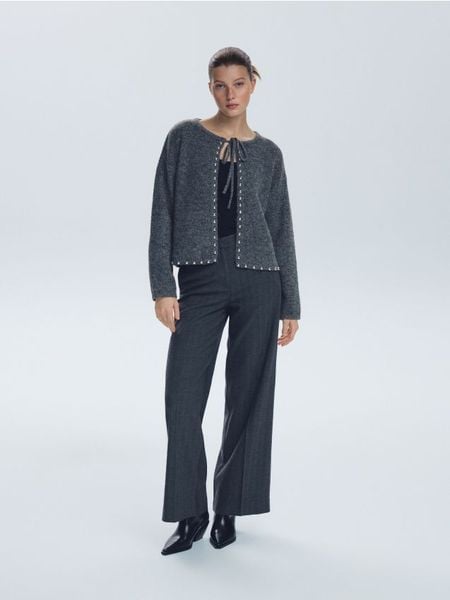 Kardigan z ozdobnymi brzegami – ciemnoszary