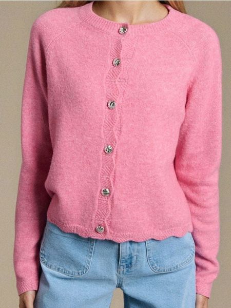 Sinsay – Kardigan z ozdobnymi guzikami z domieszką wełny – różowy –
