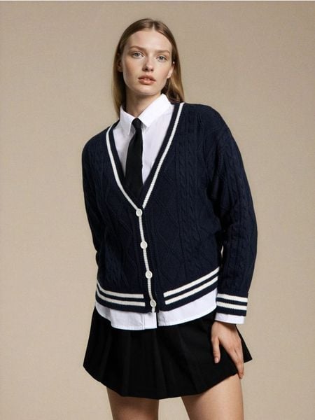 Kardigan w stylu akademickim – granatowy