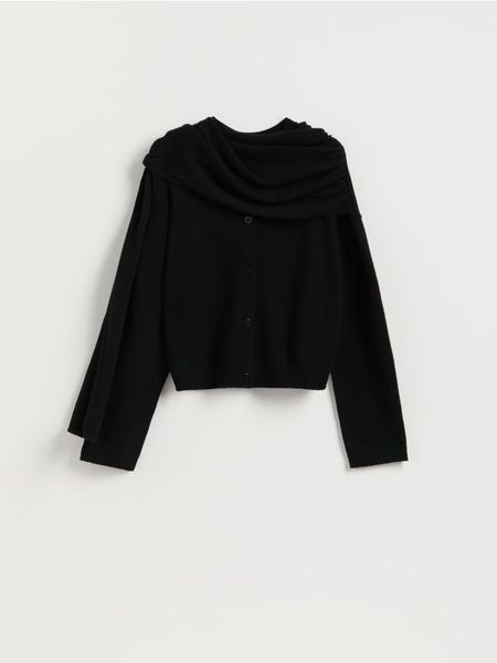 Kardigan z szalem z wełną – czarny
