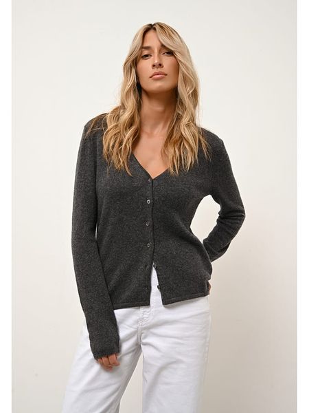– czysty kaszmir- dekolt: V- zapięcie: listwa guzikowa- krój: wąski- look: jednokolorowyUwaga: Zaniżona rozmiarówka – ten produkt zalecamy zamawiać w rozmiarze o jeden numer większym niż zwykle.