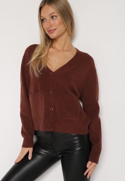 Brązowy Rozpinany Kardigan z Dodatkiem Kaszmiru Vetirira