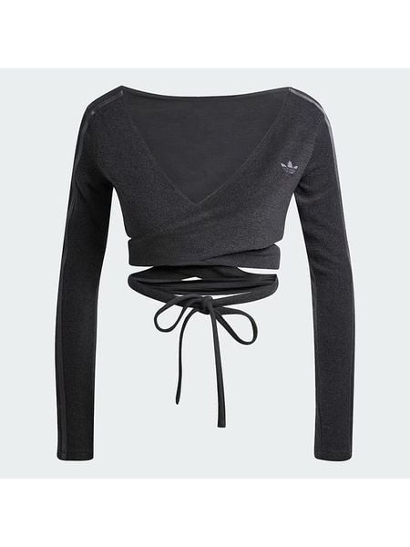 – z dodatkiem poliestru pochodzącego z recyklingu- dekolt: V- detale: ozdobne wiązanie- krój: cropped- wzór: melanżowy- nadruk: logo