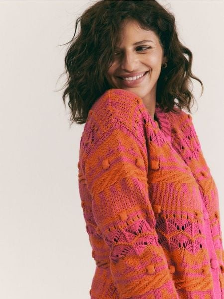 Wzorzysty kardigan z bawełną – wielobarwny