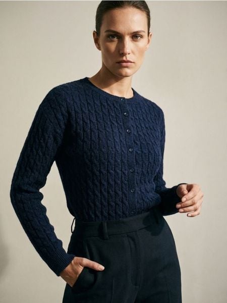 Kardigan z dekoracyjnym splotem – granatowy