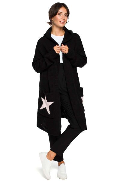 Kardigan z Kapturem i Motywem Gwiazdy – Czarno Pudrowy